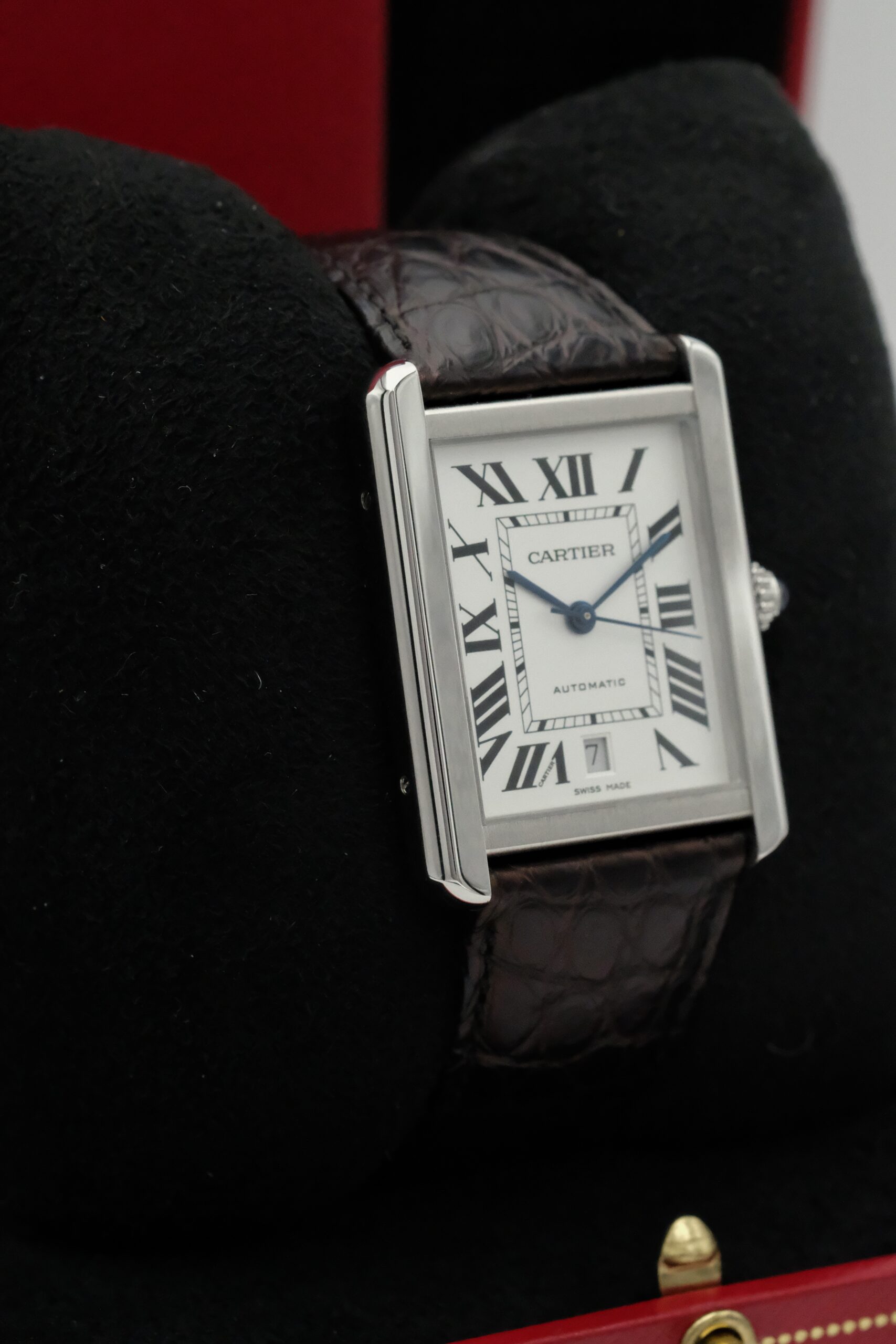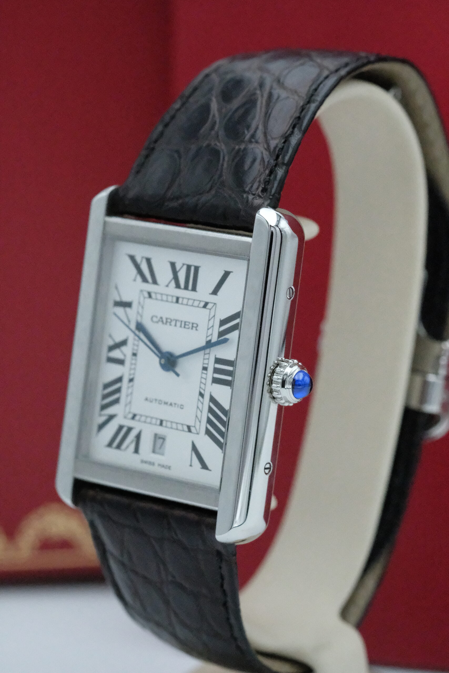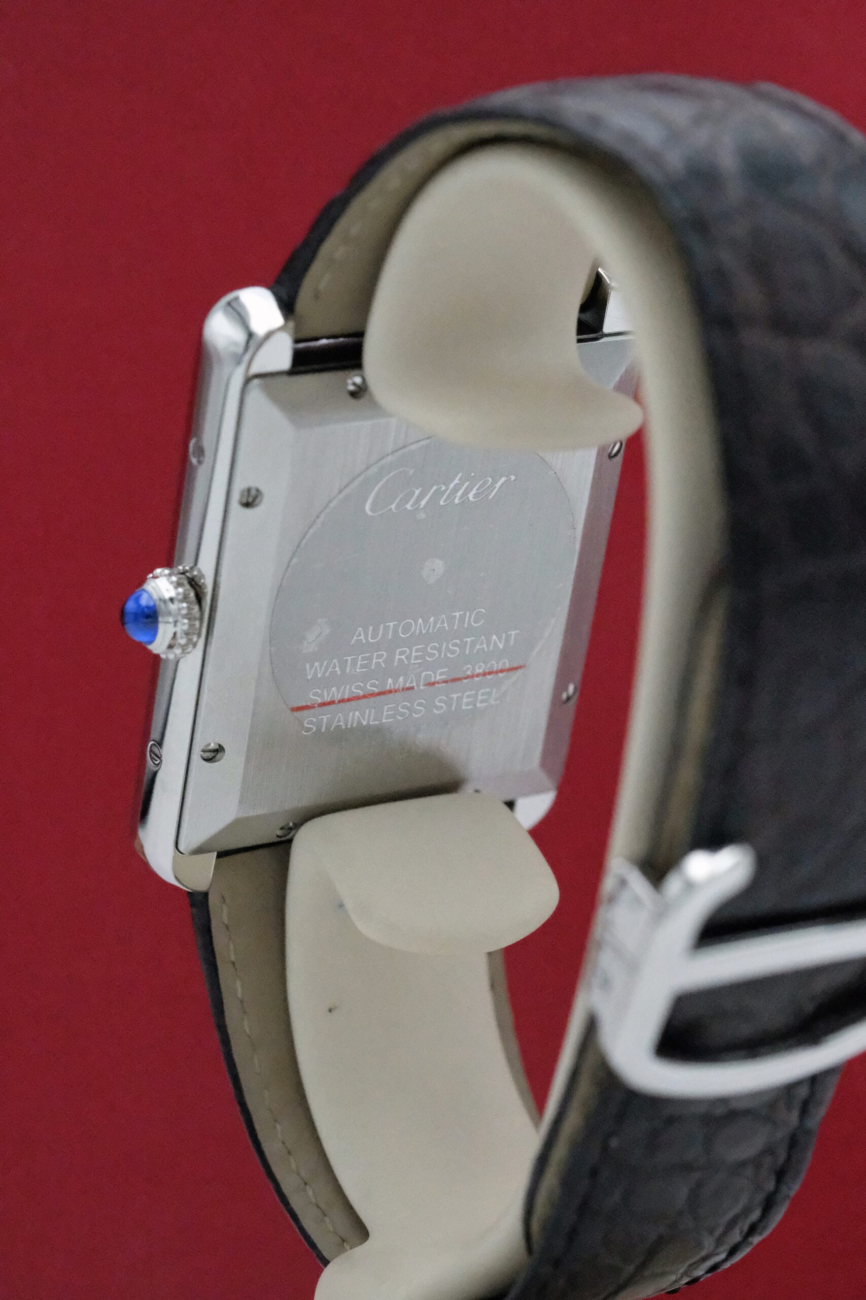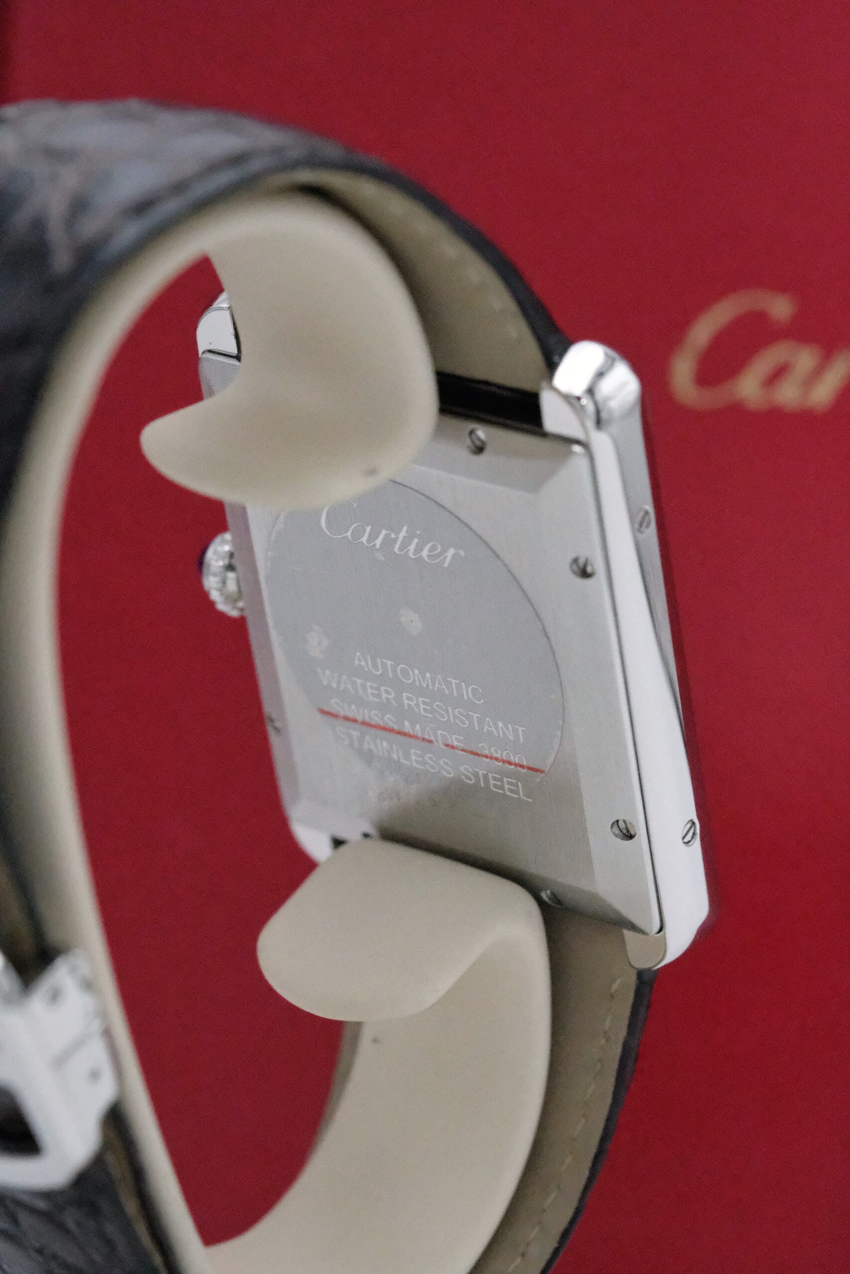 Cartier Tank Solo XL ref. 3800, anno 2017, automatico, cassa in acciaio da 31 mm, quadrante bianco e cinturino in pelle nera. Full set in ottime condizioni.