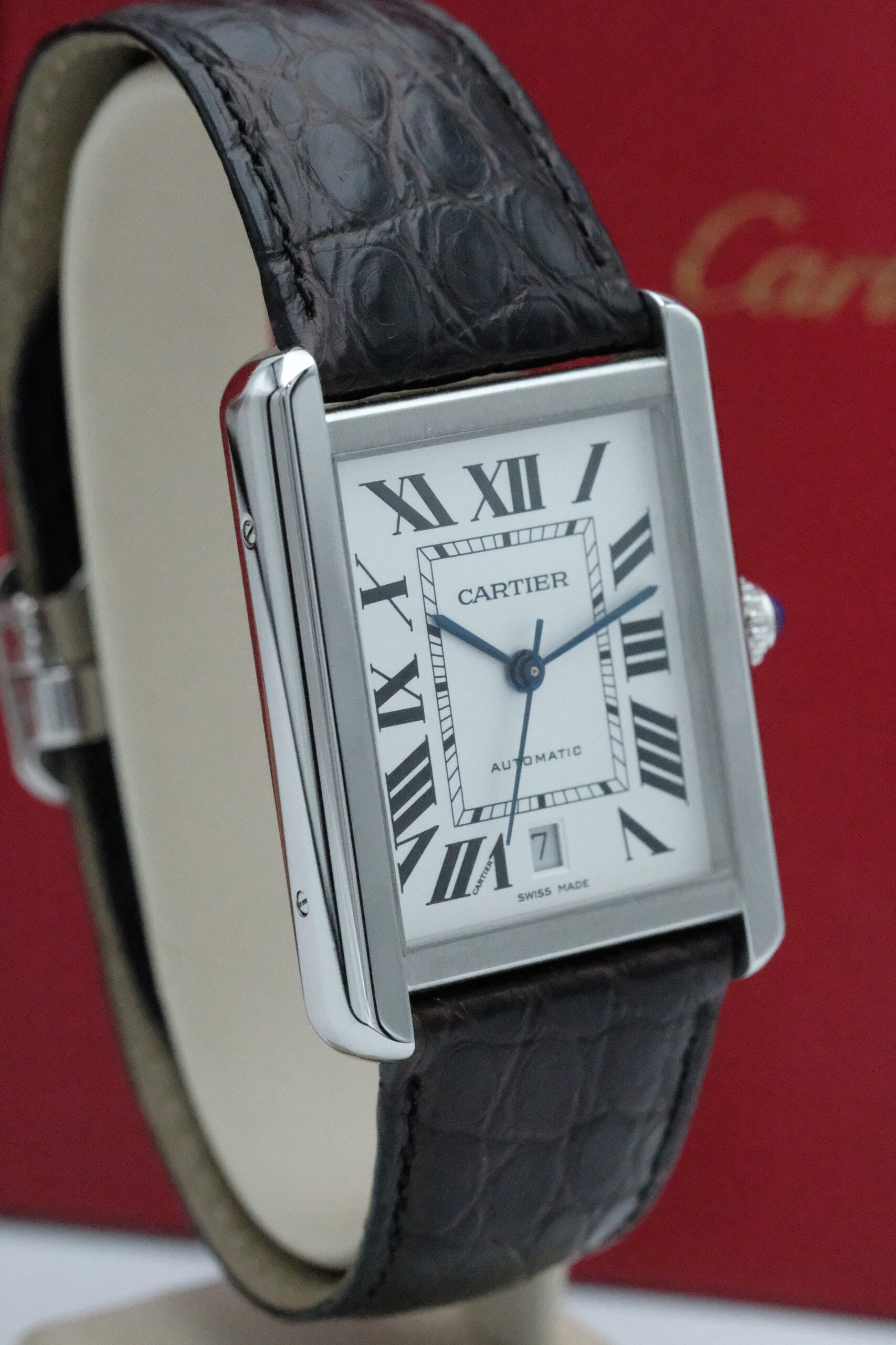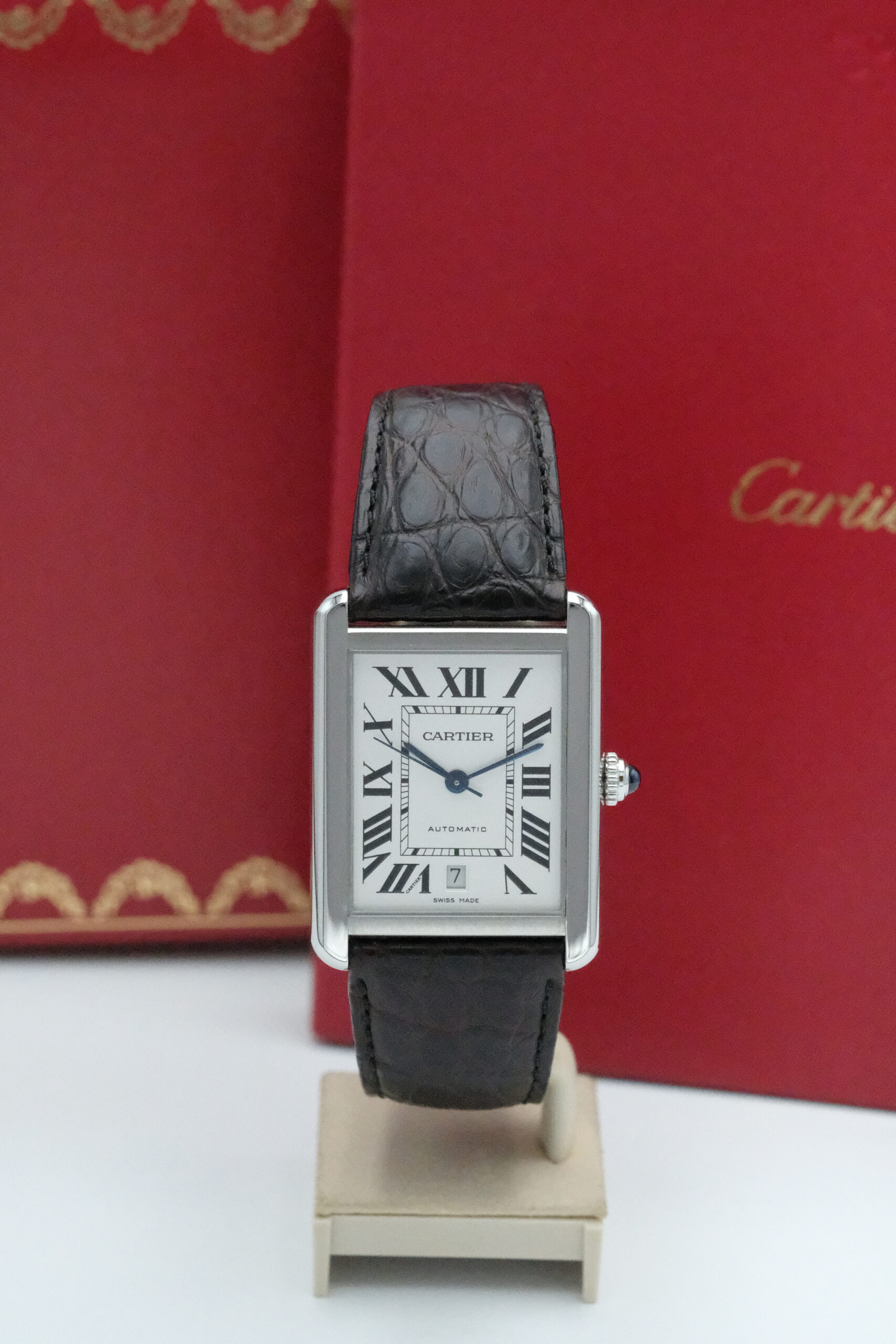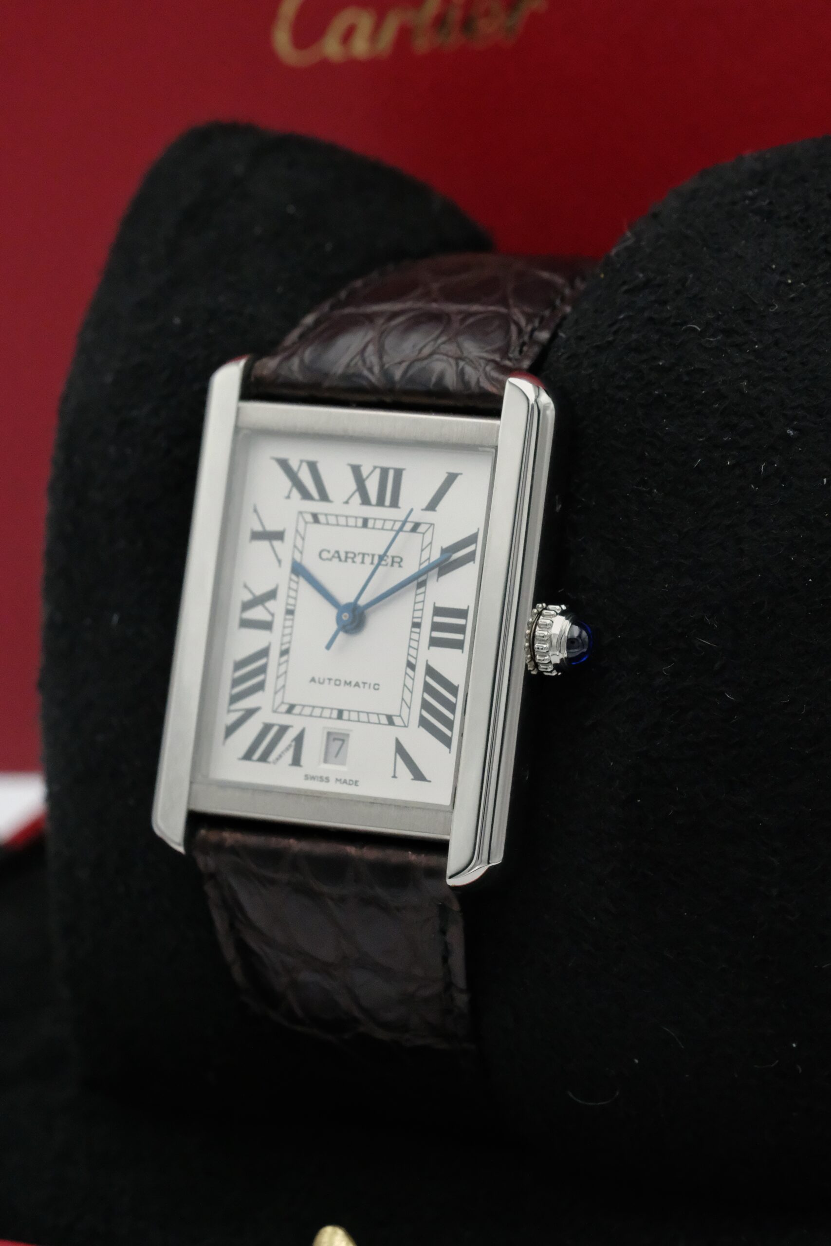 Cartier Tank Solo XL ref. 3800, anno 2017, automatico, cassa in acciaio da 31 mm, quadrante bianco e cinturino in pelle nera. Full set in ottime condizioni.