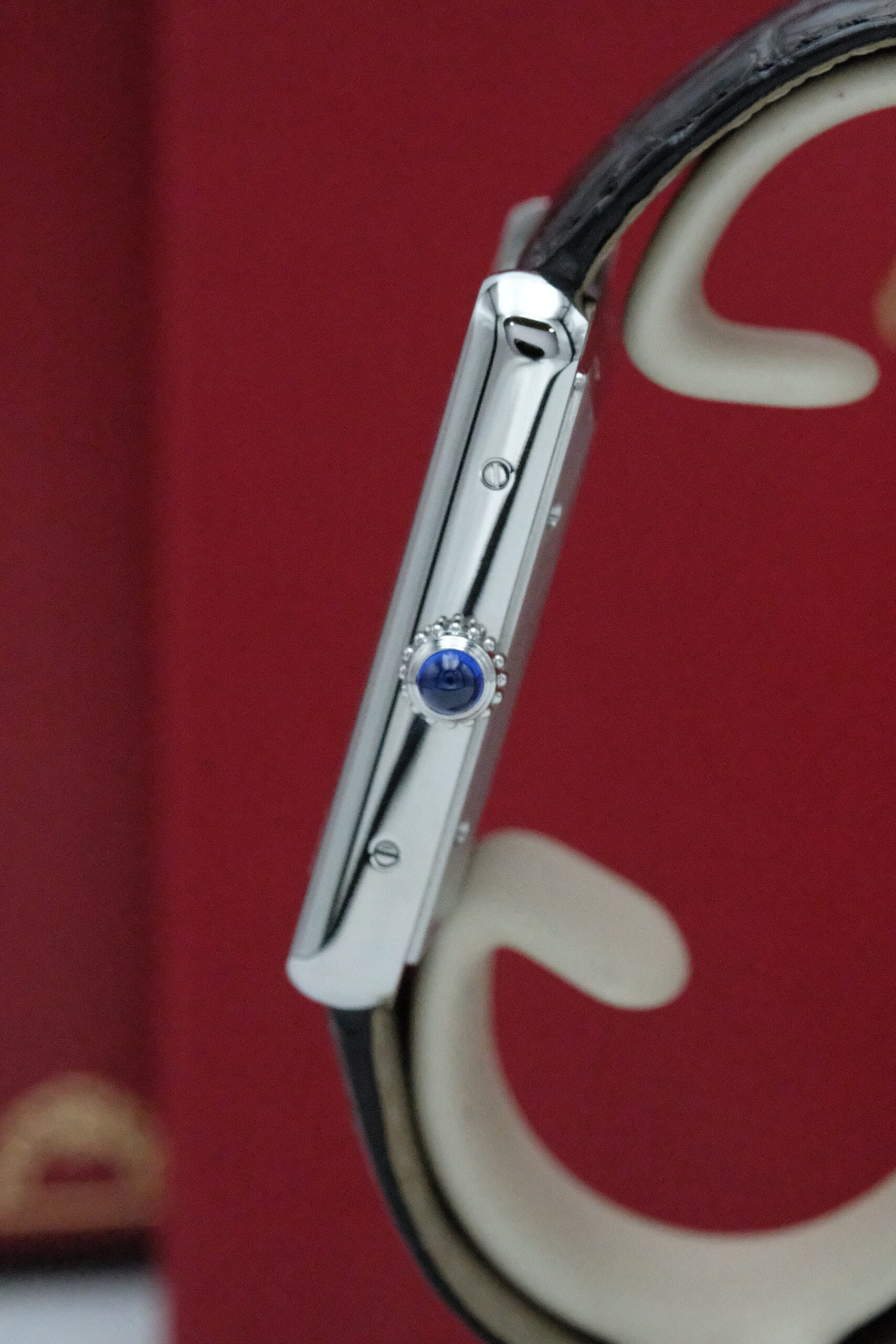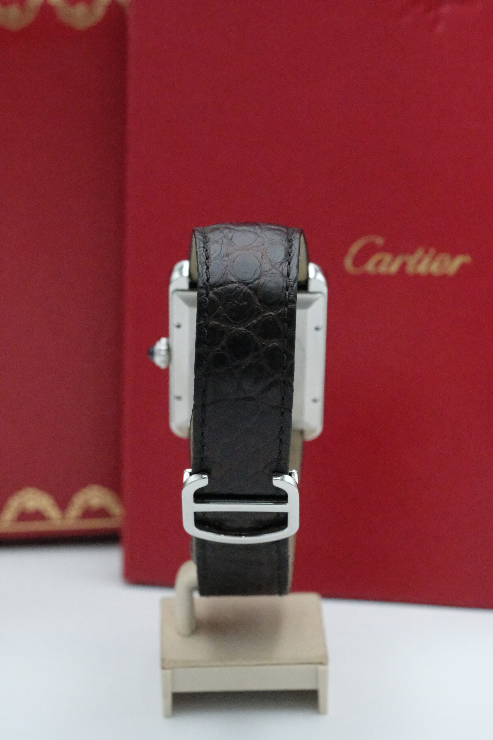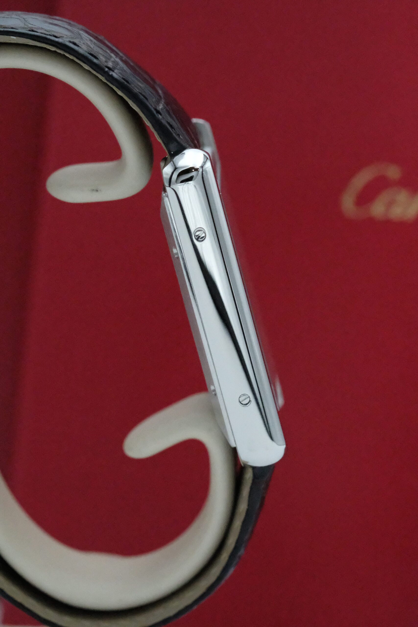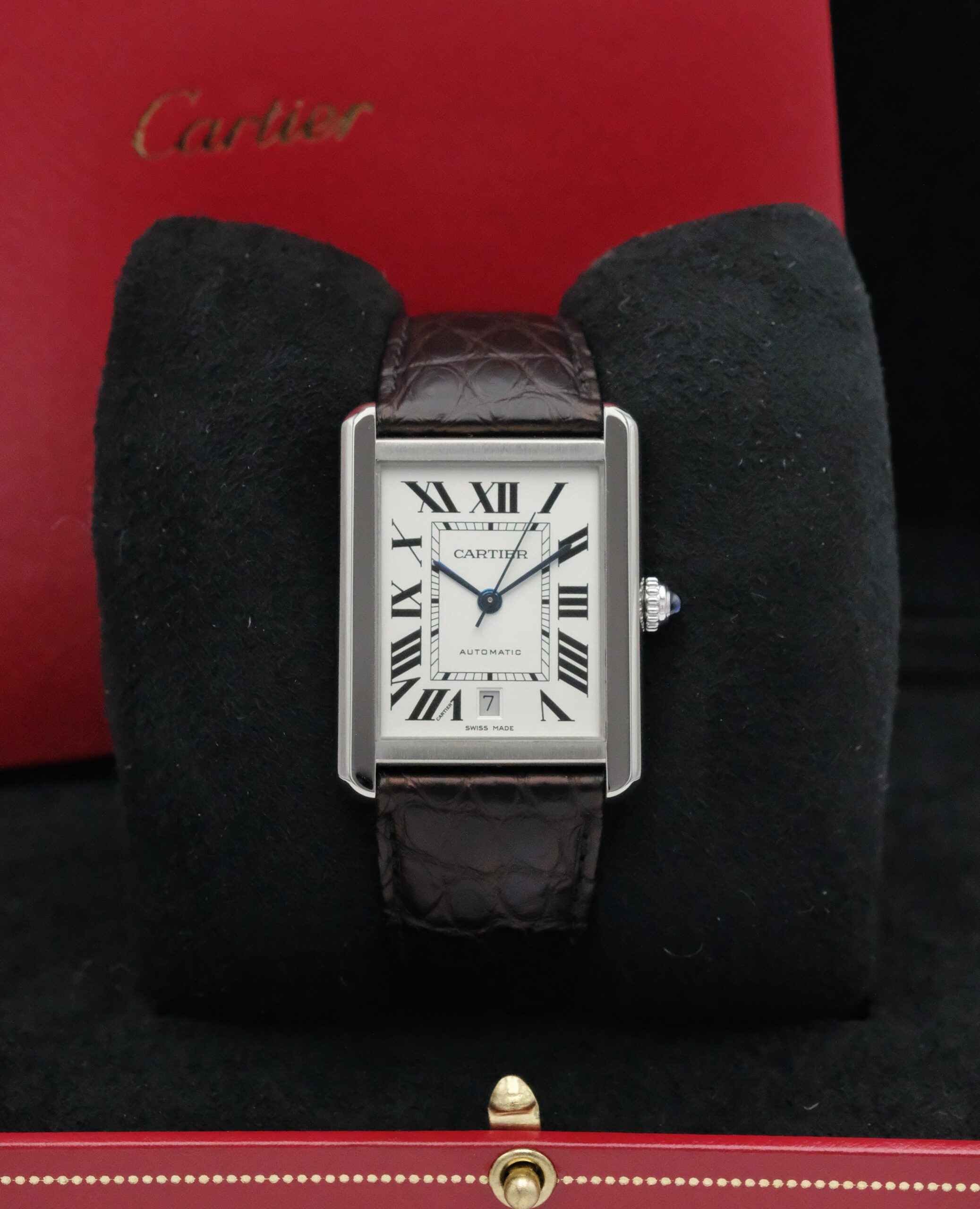 Cartier Tank Solo XL ref. 3800, anno 2017, automatico, cassa in acciaio da 31 mm, quadrante bianco e cinturino in pelle nera. Full set in ottime condizioni.