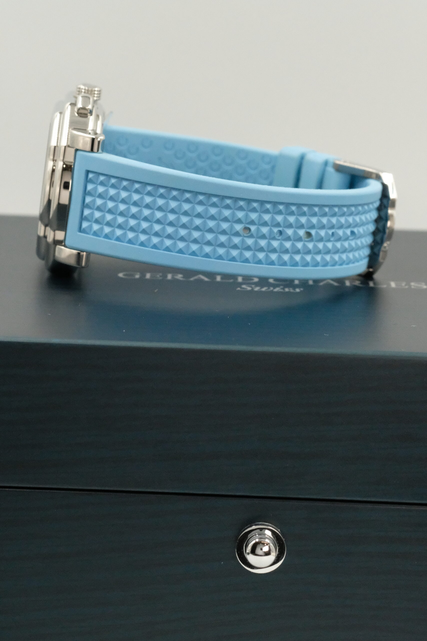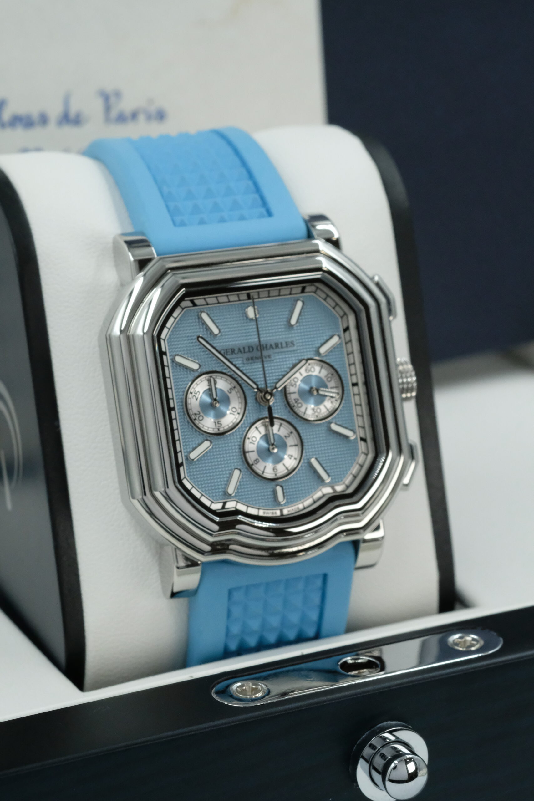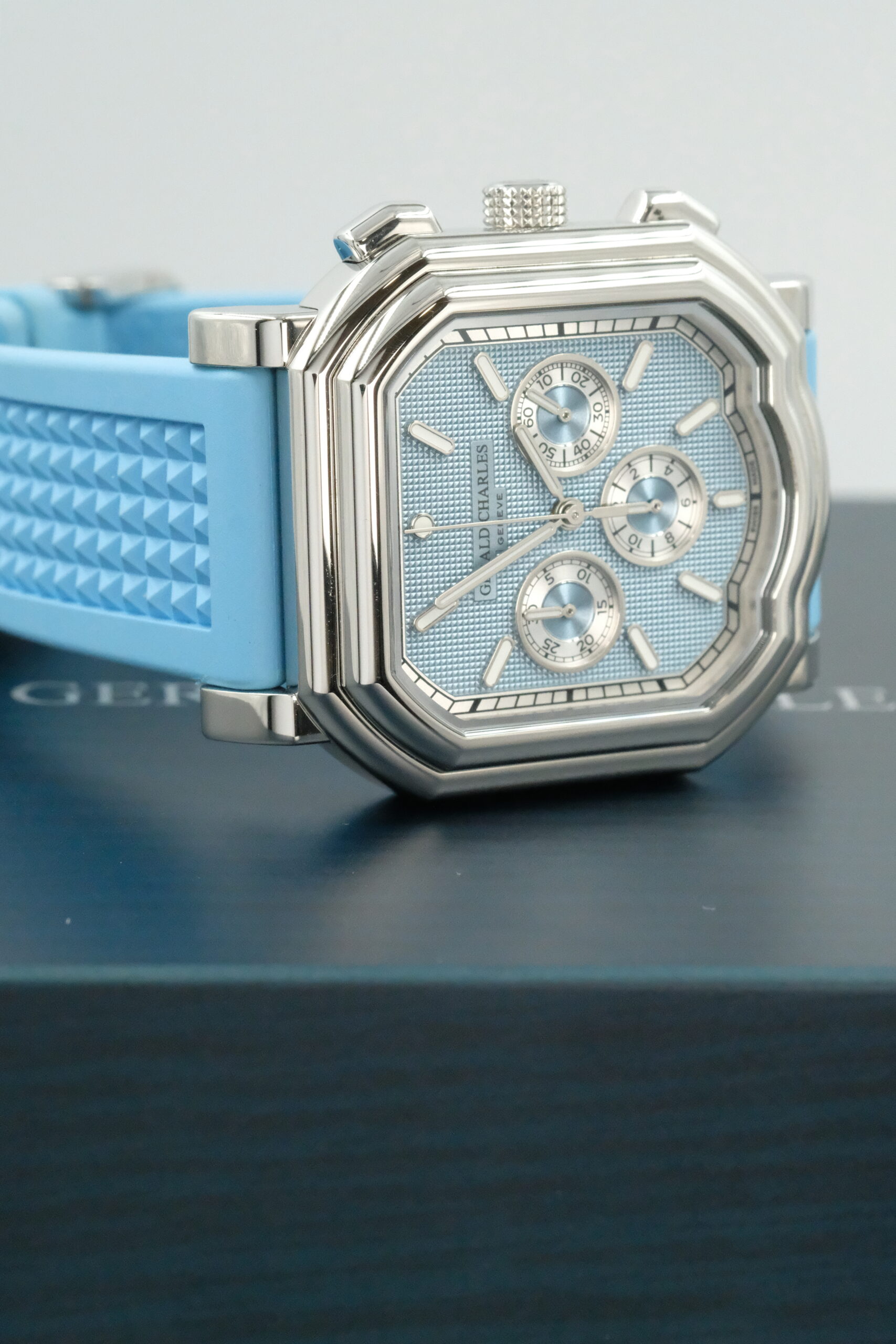Gerald Charles Maestro 3.0 Chronograph GC3.0-SSPS-O7CP-RSPN con quadrante sunburst azzurro e cinturino Clous de Paris. Cassa in acciaio, comfort ErgonTeq, scatola e garanzia originali.