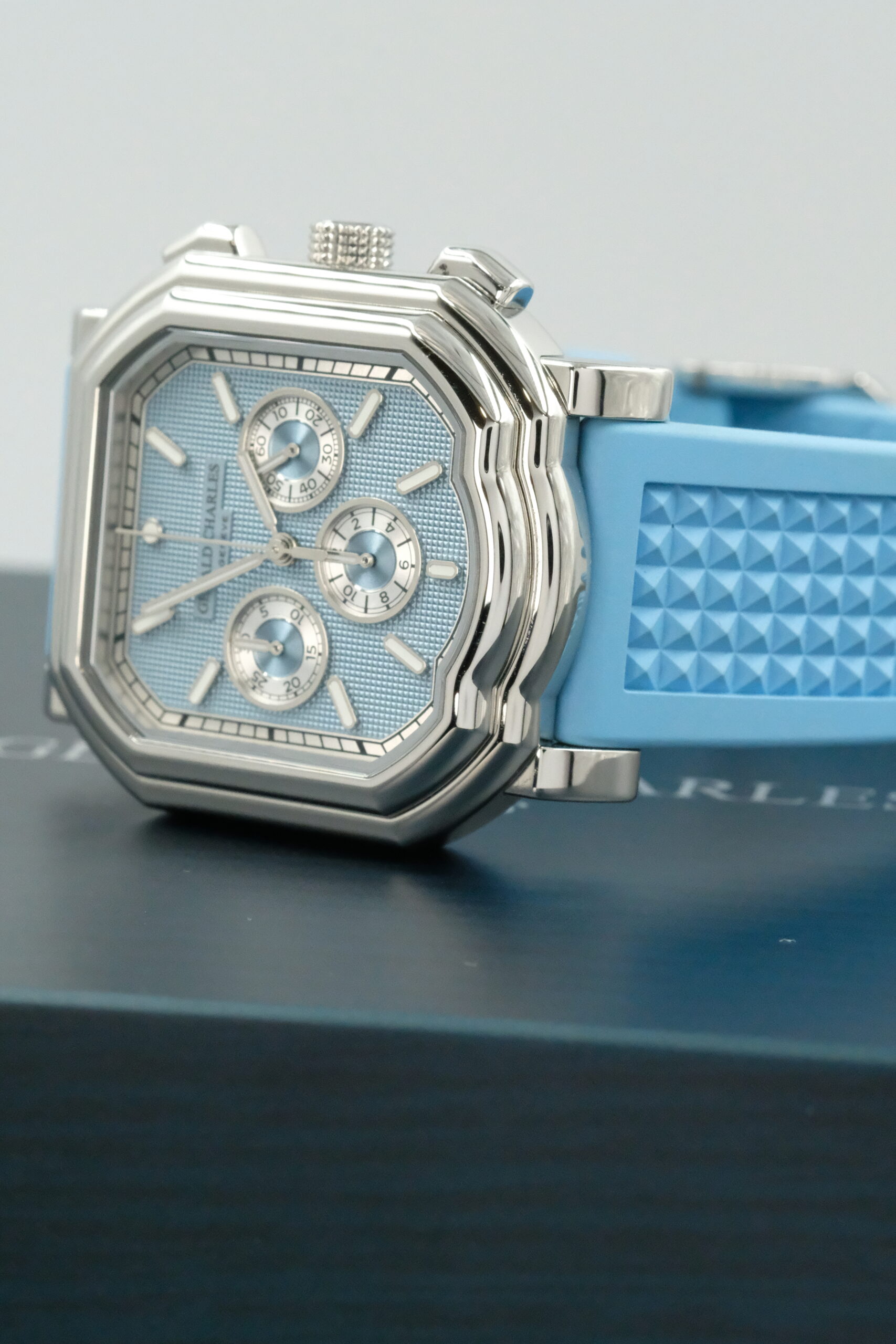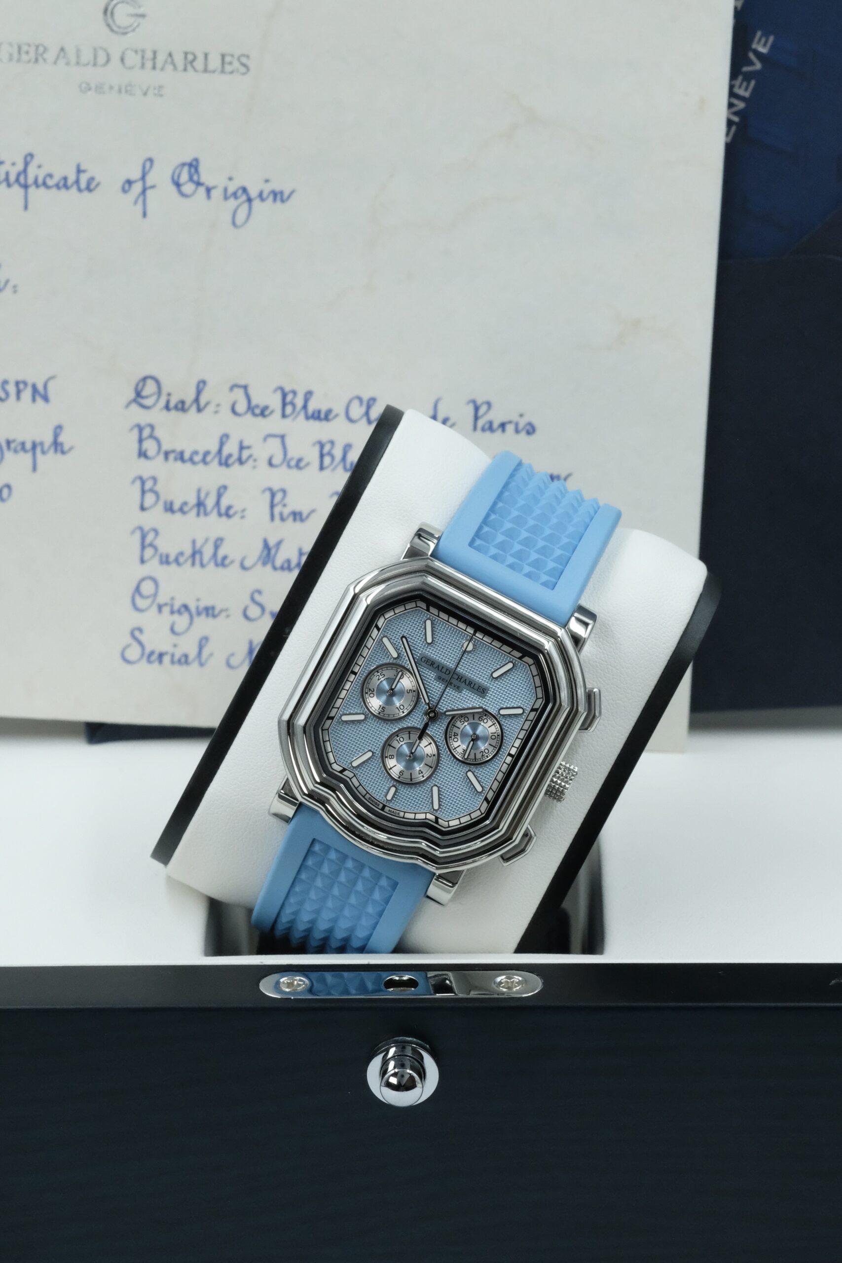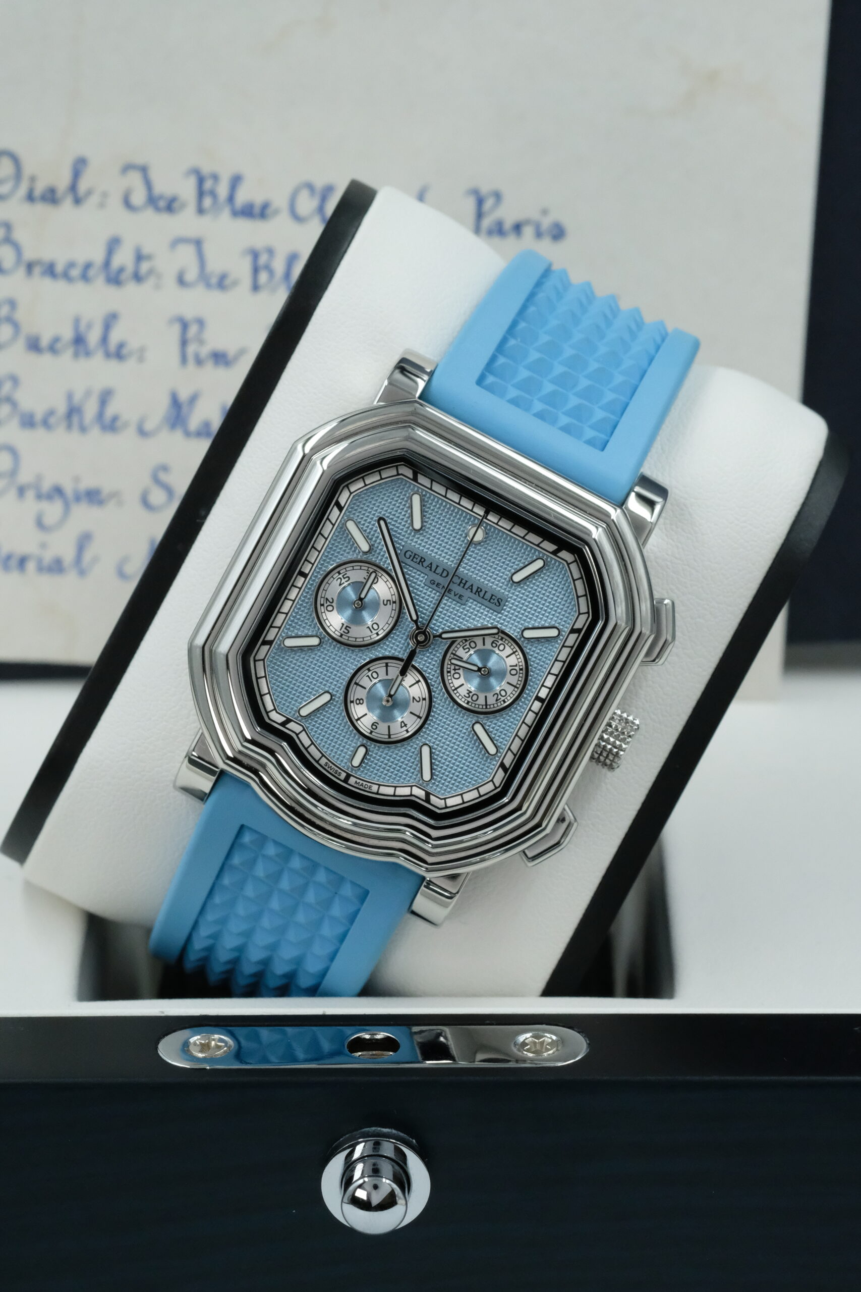 Gerald Charles Maestro 3.0 Chronograph GC3.0-SSPS-O7CP-RSPN con quadrante sunburst azzurro e cinturino Clous de Paris. Cassa in acciaio, comfort ErgonTeq, scatola e garanzia originali.