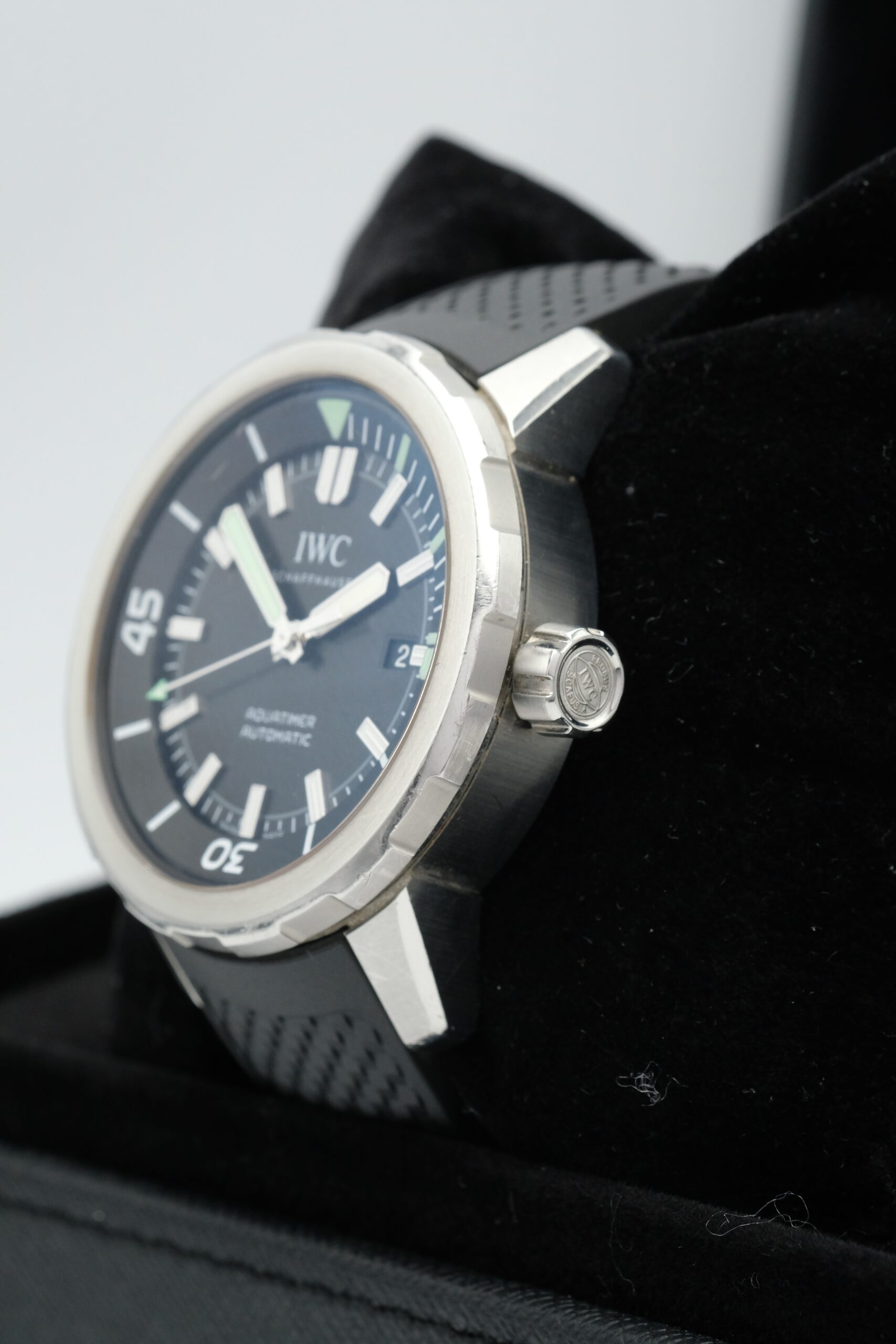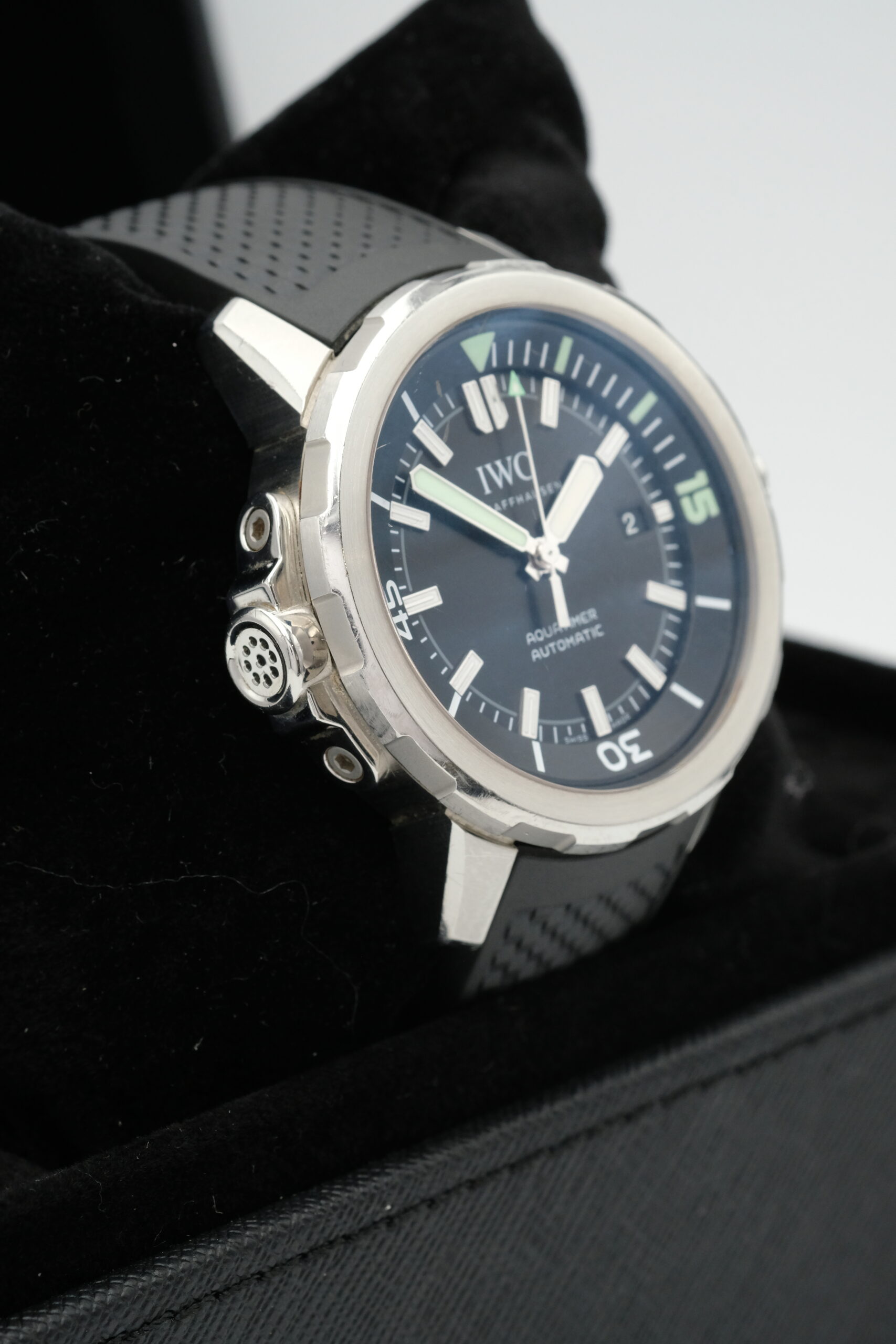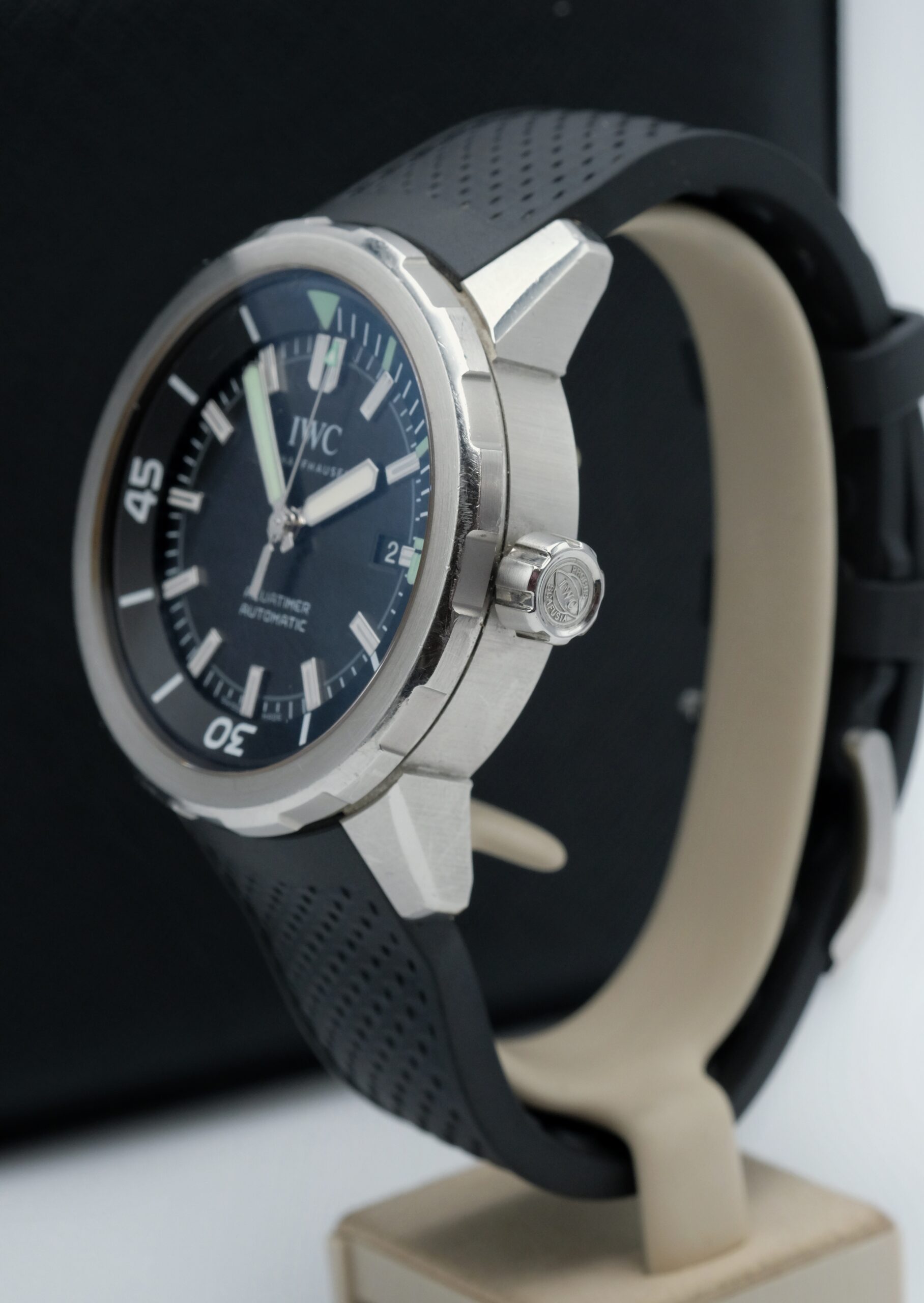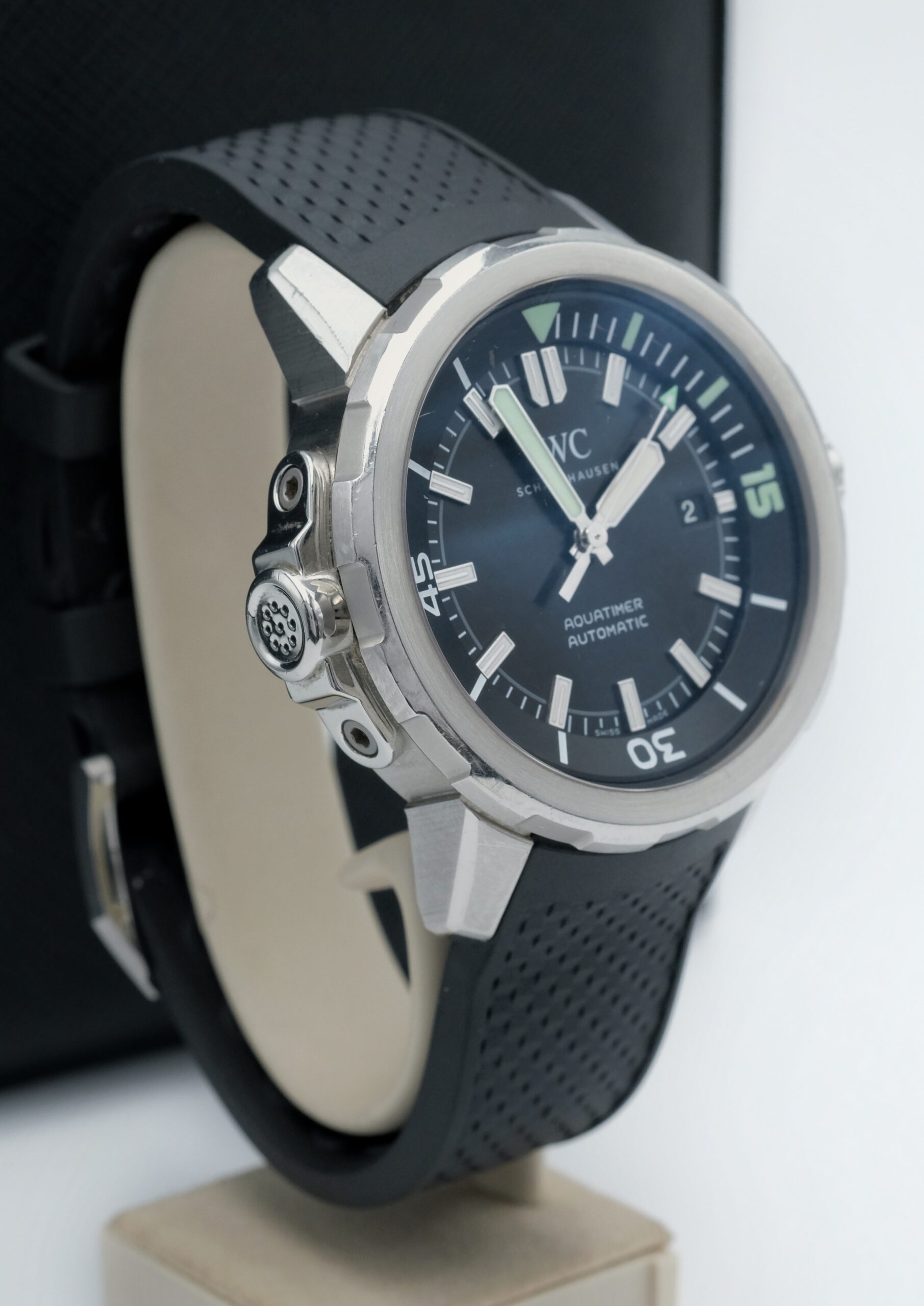 IWC Aquatimer Automatic IW329001 in acciaio 42 mm, quadrante nero, cinturino in gomma e movimento automatico. Impermeabile 30 ATM, con scatola e garanzia del negozio.