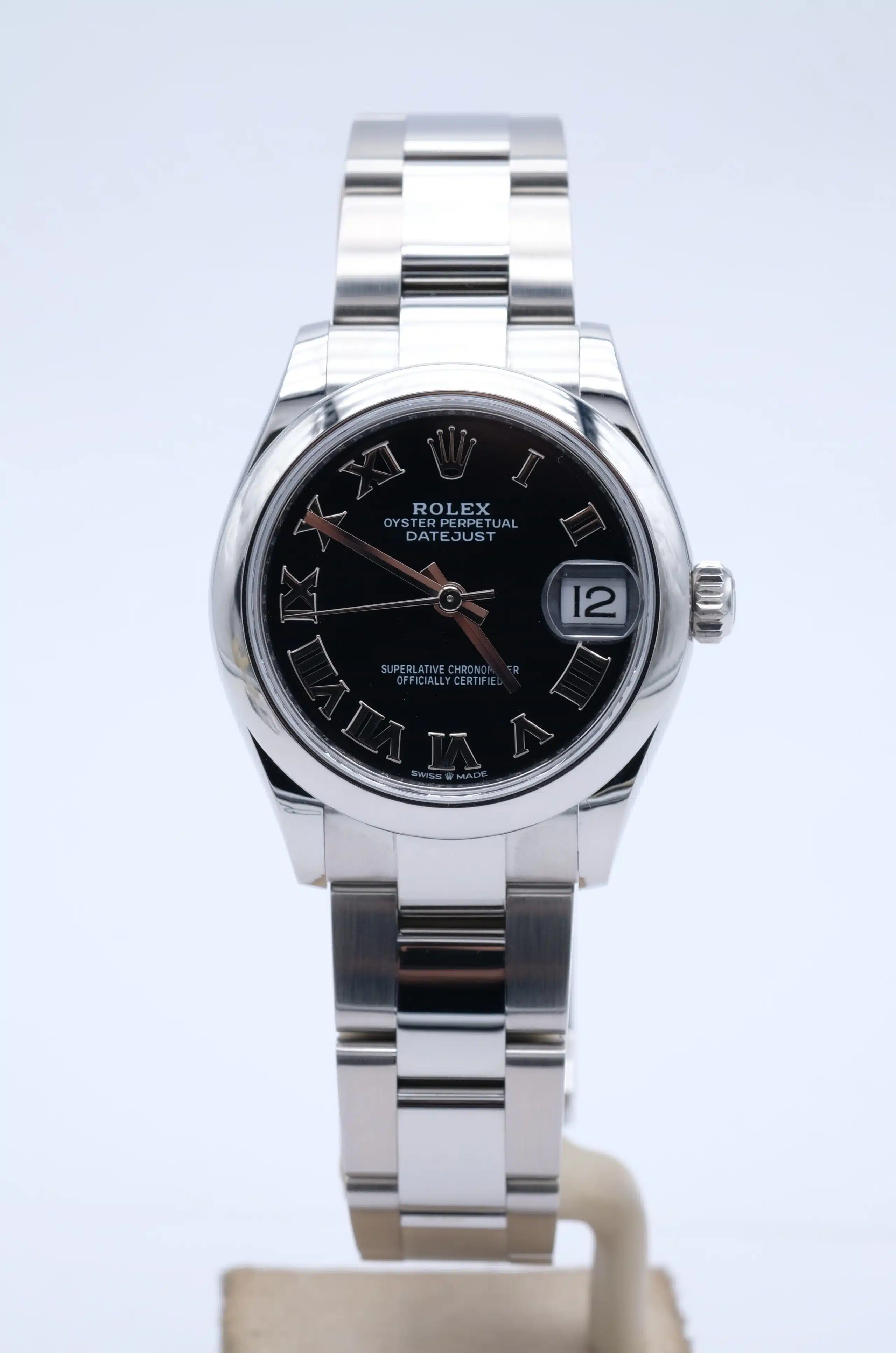 Rolex Datejust 31 ref. 278240, cassa 31 mm in acciaio, quadrante grigio con numeri romani, movimento automatico 2236 con 55h di riserva di carica. Anno 2024, eccellenti condizioni, completo di corredo originale. Disponibile su appuntamento a Roma. Prezzo 6.000 €.