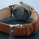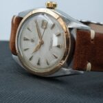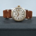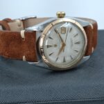 Rolex Datejust 6105 in acciaio, con cassa di 36 mm e quadrante bianco leggermente virato. Il datario rosso è una caratteristica che lo rende unico. In buone condizioni, venduto con scatola del negozio e nostra garanzia valida 24 mesi sul buon funzionamento.