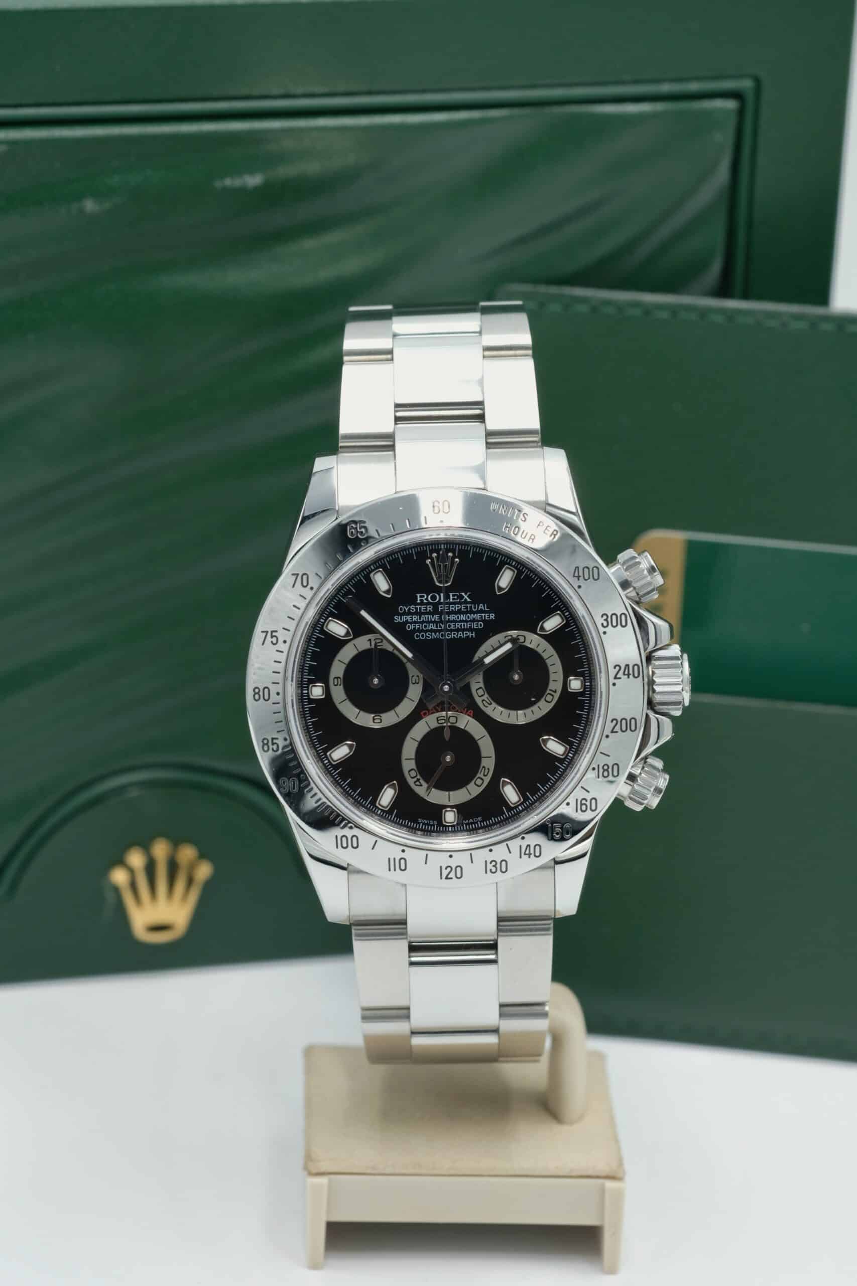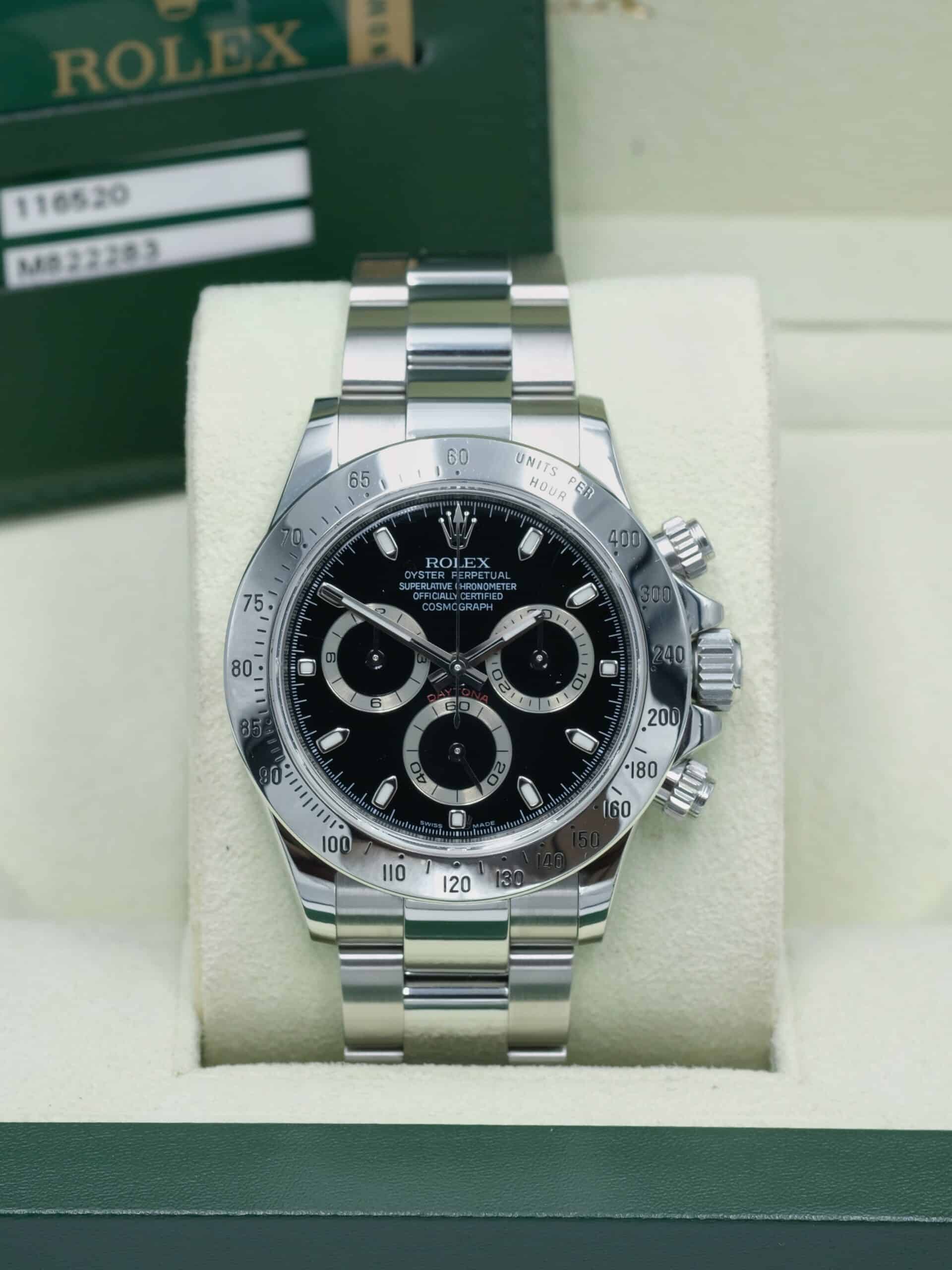 Rolex Daytona Ref. 116520 anno 2008, seriale M, quadrante nero, cassa 40 mm in acciaio con chiusura corta. Full set completo in ottime condizioni.