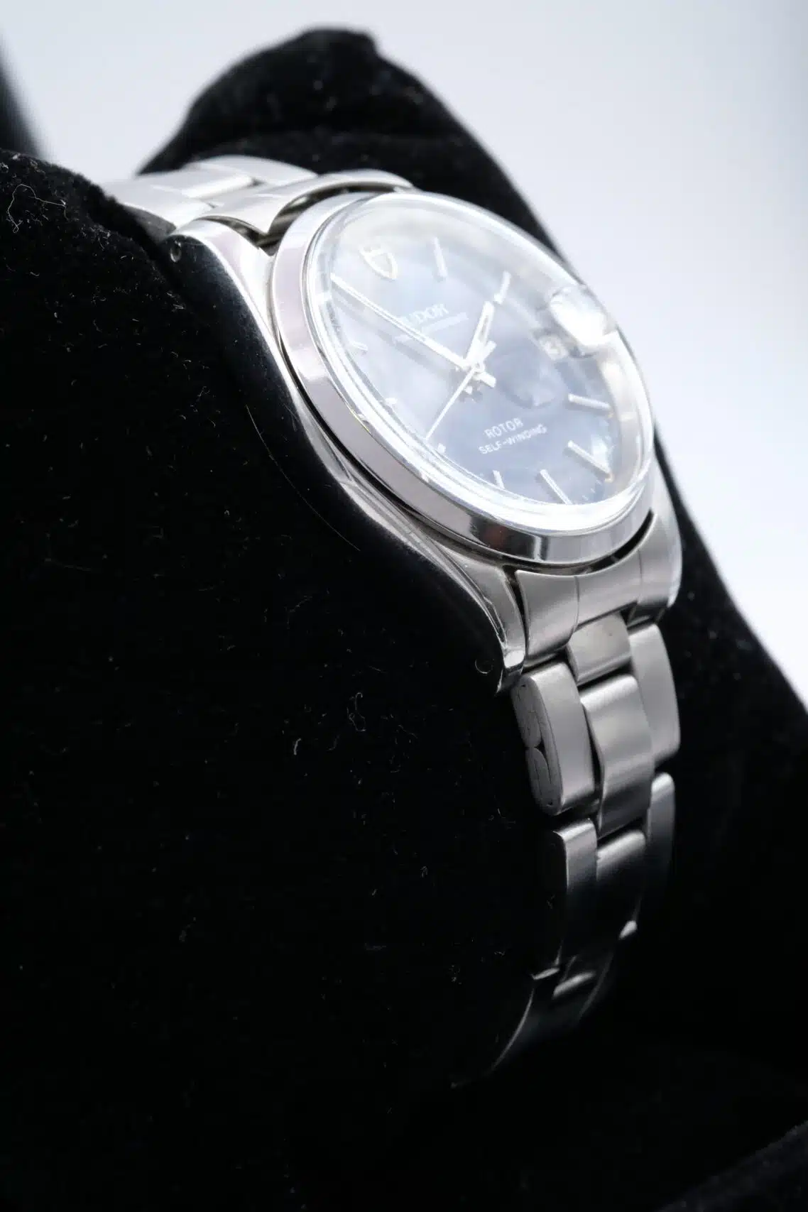 Tudor Prince Date 72000, quadrante blu e cassa in acciaio da 32 mm, in buone condizioni. Viene venduto con scatola personalizzata in pelle nera del nostro negozio e garanzia di 24 mesi.