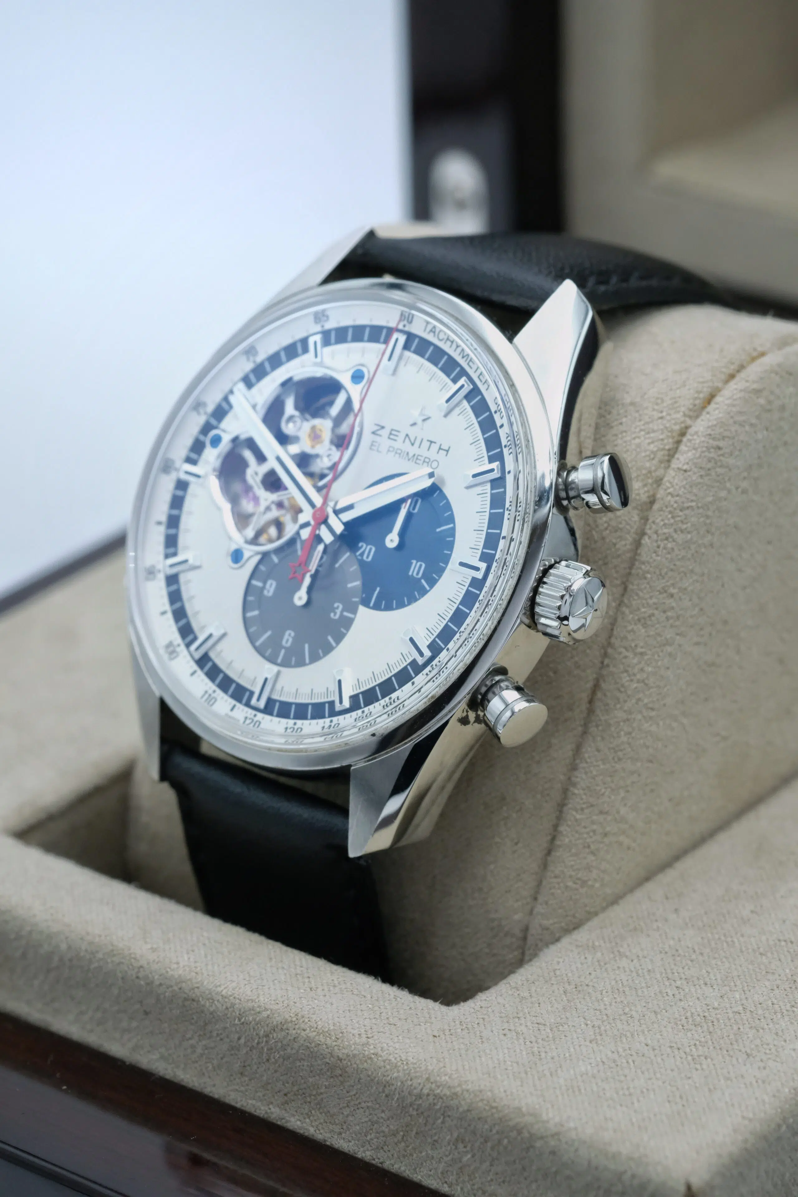 Zenith El Primero Chronomaster 03.2080.4021/21.C496, cassa 42 mm in acciaio, quadrante argenté, automatico, cinturino in pelle nera, full set con scatola e garanzia.